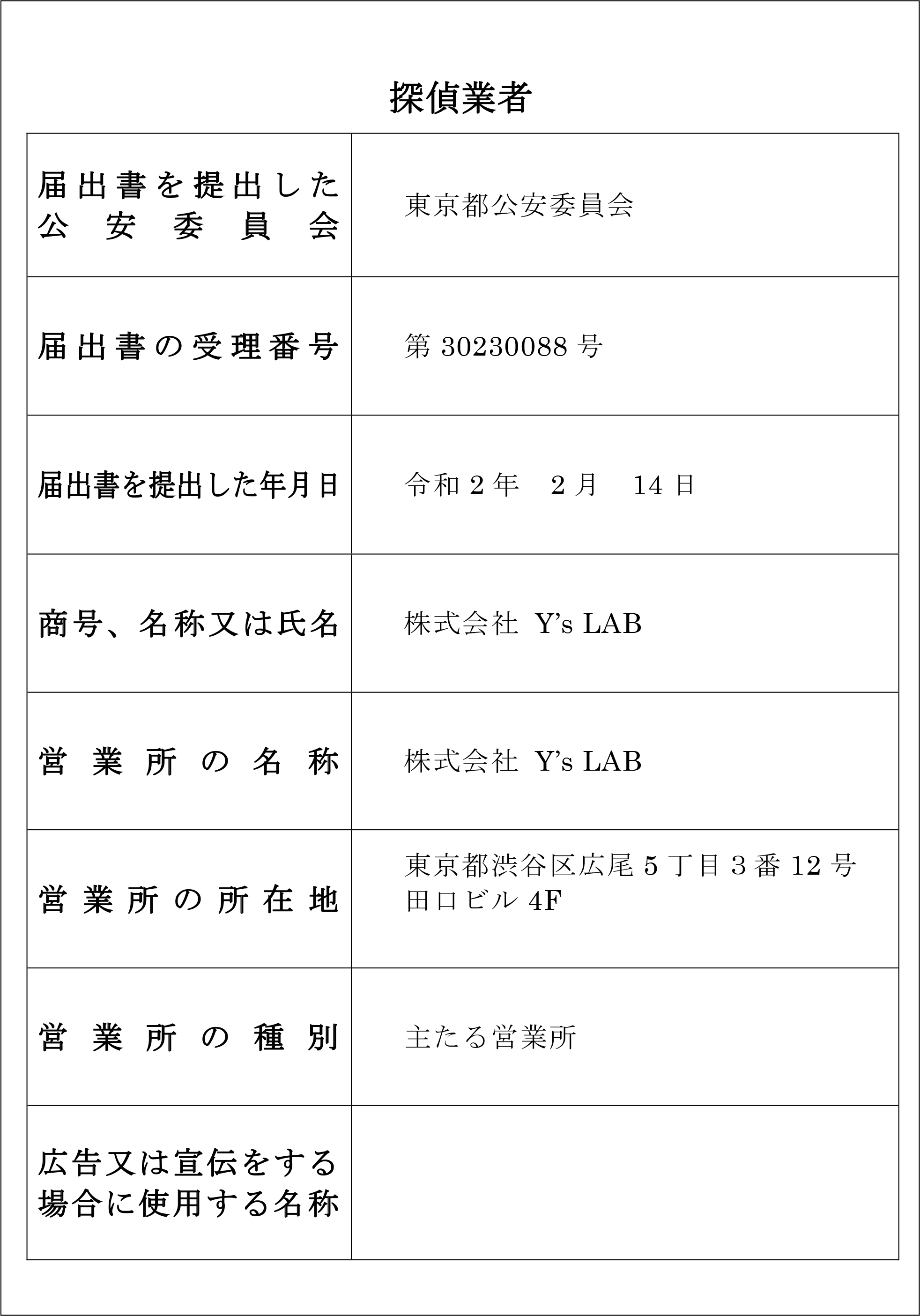 | 会社名 | 株式会社Y's LAB(ワイズラボ) |